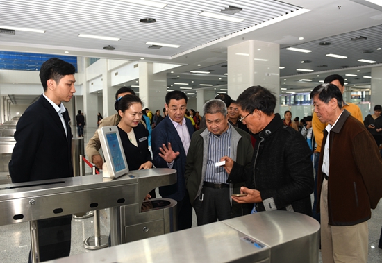 座談會開始之前,姜宏濤、劉海榮、王修奮等陪同老干部參觀新落成的海口汽車總站,姜宏濤董事長親自當(dāng)起了“向?qū)?rdquo;,向老干部介紹??谄嚳傉粳F(xiàn)代化的自助售檢系統(tǒng)、智能化調(diào)度系統(tǒng)、信息發(fā)布系統(tǒng)、安防監(jiān)控系統(tǒng)以及先進(jìn)的人臉識別、車牌識別,車輛自動檢測、自動報(bào)班等功能。老干部們被眼前一座現(xiàn)代化、智能化、生態(tài)型道路客運(yùn)樞紐站所震撼,對公司近年來發(fā)展成果給予點(diǎn)贊。