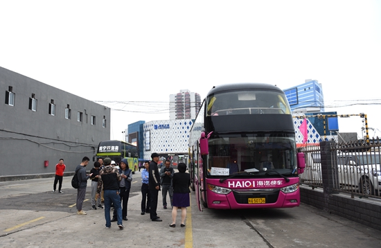 針對海口三大港區(qū)道路嚴重擁堵,海汽發(fā)往島外的省際班車“過海難”,從島外返回的車輛不能按時應班的實際,海汽集團采取“人車分離,帶客過海”接駁運輸,就是從島外返回的180多輛客車在徐聞海安車站進行例行安檢等待接駁,由海汽各分公司、車站、車隊工作人員帶旅客過海后在海安車站乘車。